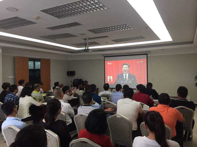 10月18日上午9时,中国共产党第十九次全国代表大会在北京人民大会堂隆重开幕。海旅控股集团党委在集团会议室设置直播观看主会场,并在下属企业设3个分会场,共组织92名党员和领导干部观看直播。