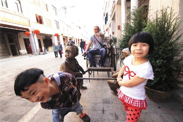 修缮后的骑楼老街吸引众多游客参观游览。陈元才 摄