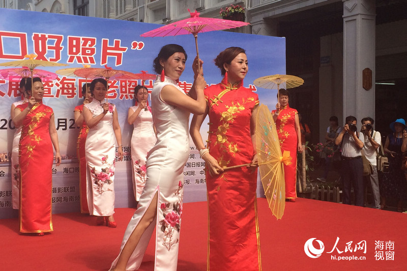 人民网海南视窗5月23日电 上午,海口市委宣传部、中华国际旗袍会海南分会精心策划组织了一台旗袍走秀活动,活动在海口骑楼老街隆重上演,百年旗袍秀尽显东方女性之美。 来自省内各行业300多名女性同胞,身穿各色华丽旗袍、汉服,通过《旗袍走秀》、《春江花月夜》、《天蓝蓝》、《重回汉唐》等节目,尽情展示旗袍风采,将旗袍文化的传承与中华女性传统美德、才艺相融合,使女性美的文化传播由内而外得以更完美的诠释,受到现场观众的热捧。 旗袍、汉服、与骑楼老街古朴建筑相映成辉,融为一体,也让“海口好照片”2015聚焦海口全国摄影大展暨海口老照片征集启动仪式的摄影师们大饱眼福,纷纷拍下精美照片,记录海南旗袍发展新篇章。(党欣) 汉服走秀《梦回唐朝》 海口骑楼老街旗袍走秀 旗袍秀《春江花月夜》