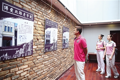 7月10日,在海口南洋骑楼老街文化展示馆,“博爱北路老字号”图片展吸引观者驻足观看。据了解,本次展览共发掘老字号60多个,此次展出仅为其中一部分。本报记者 张茂 摄